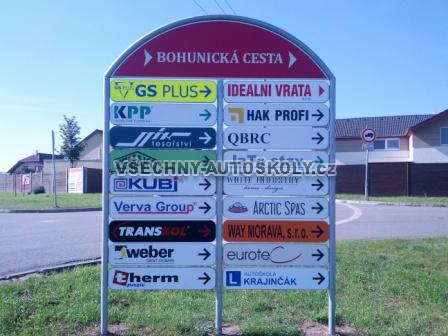 Směrová cedule Autoškoly z hlavní cesty ( učebna Moravany)
